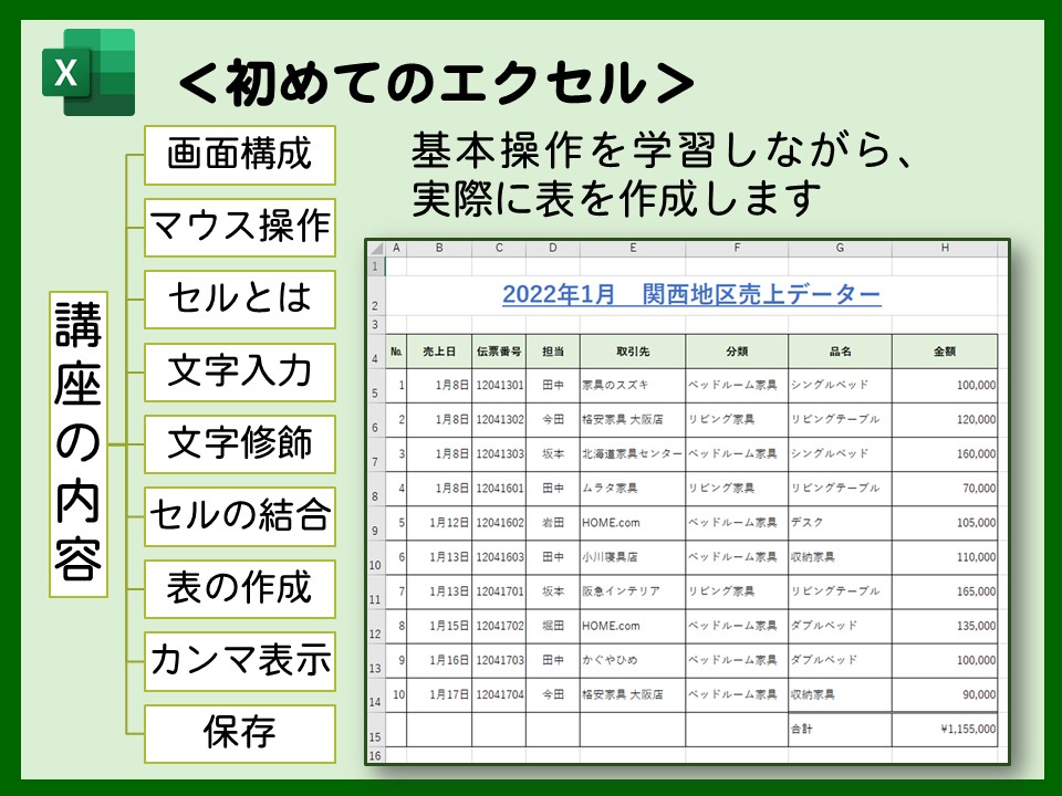 表を作りながら、エクセルの基本的な機能と操作を学びます。